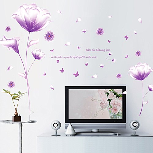 -. Title : ufengke® Beautiful Purple Flowers Wall Decals, Living Room Bedroom Removable Wall Stickers Murals