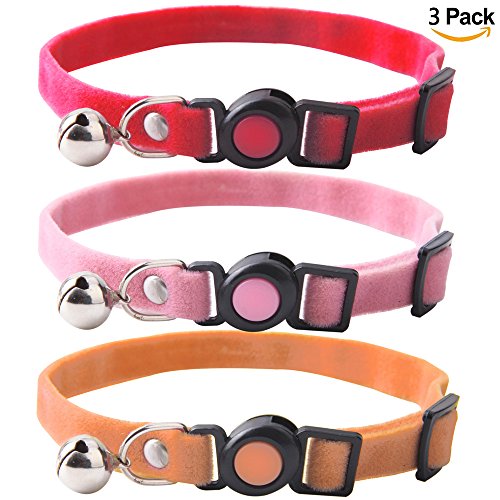 Features: Adjustable With adjustable belt, you can easily find a customer fit for your baby. Soft Durable The collars are made of pleuche , which is soft and durable. Safe With breakaway feature, your baby will be safe when playing outdoor. 3 Pack Package includes 3 PCS collars with different colors. It will be really easy for you to distinguish your babies.