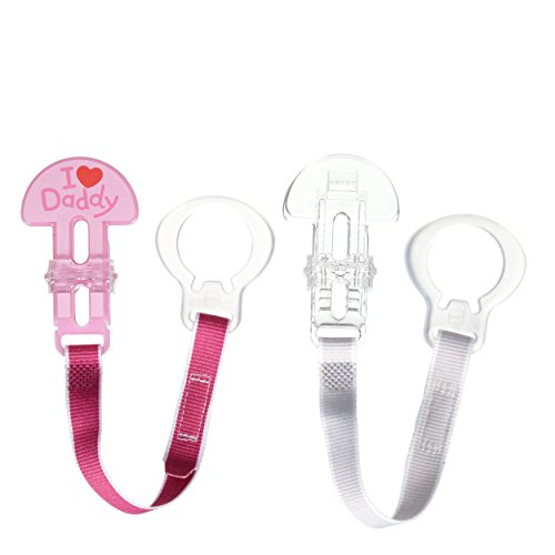 -. Binding : Baby Product -. Brand : MAM -. Color : Pink -. Department : baby-girls -. EAN : 0845296080721 -. Feature : Includes 2 BPA/BPS Free pacifier clips / Universal fit - fits both ring and button pacifiers / Flexible ring fits button pacifiers / Ribbon can be attached directly to ring pacifiers / Sliding mechanism for one handed operation makes it easy to fasten -. IsAdultProduct : 0 -. Label : MAM -. Manufacturer : MAM -. Model : 8072-012-0-1 -. MPN : 8072-012-0-1 -. PackageQuantity : 1 -. PartNumber : 8072-012-0-1 -. ProductGroup : Baby Product -. ProductTypeName : BABY_PRODUCT -. Publisher : MAM -. ReleaseDate : 2013-10-03 -. Studio : MAM -. Title : MAM Love & Affection Pacifier Clip, I Love Daddy, Girl, 2-Count -. UPC : 845296080721