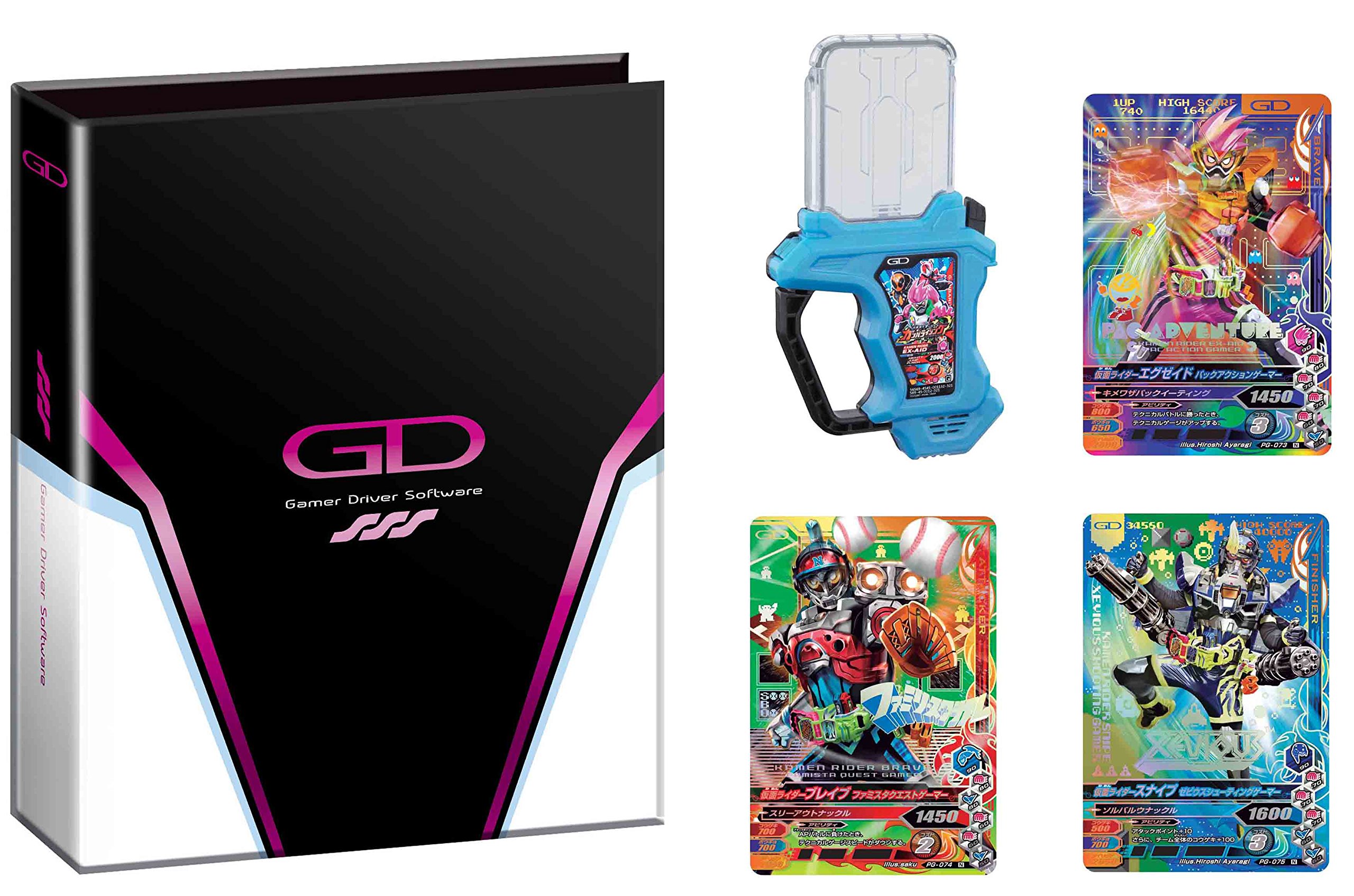 DX "Gamba Rising Gashat & Binder Set" will be. When you take out contents from the box · Gamba Rising Gashat & Manual · Binder · Card Refill (4 pockets × 10 sheets) · Gamba Rising Card (4 sheets) is included. Gashat will be the DX version "Gamba Rising Gashat" that will appear at Toei Tokusatsu YouTube Officia "Masked Rider Gem". The Gashat body on the surface is light blue color and the reverse side is black forming color, and Exeides, Ghosts, Drives are drawn on the label in the card style of Gamba Rising on the label. The terminal part is a clear part and the symbol mark of all riders from Heisei rider's "Kuga" to "Exceed" is displayed on the rear side of the terminal. The emission color is light blue. Three types of sounds, "Game Call", "Game Clear" and "Game Over", will sound when you press the button with play alone. If you insert it in Slot 1 of an optional "Gamma Driver", LV 1 transformation play, LV 2 transformation play when opening lever in slot 1, LV 3 transformation play can be done when lever is opened with slot 2 inserted. In addition, weapons can be played with weapons with weapons at "Kimiwaza Slot" with Special Moves, Skill Breakers, etc. and Gashacon Key Slasher. You can play QR code by playing "Gamba Rising" at the game center etc. In transformation sound, songs are made based on LV 3 transformation sound of "Mighty Action X", and songs are made based on LV 2 transformation sound of "Mighty Action X" in LV 3. Binder is black main color scheme and GD (Gamer Driver Software) logo is drawn on the table. The part that stops refilling with thick paper binder is made of plastic. The size is as small as 21 cm × 17 cm, but I think that it is easy to handle just as a child brings out a particular card outside. The refill that comes with the binder has 4 cards (one side pocket) for each refill, and since it comes with 10 cards, you can store 40 cards. The card pocket will be of the type to take in and out from the top of the classic. The included Gamba Rising Card is · PG - 073 "N" Kamen Rider Exe - pack Pack Action Gamer · PG - 074 "N" Kamen Rider Brave Famita Quest Gamer · PG - 075 "N" Kamen Rider Snipe Zebius Shooting Gamer · PG - 076 "N" Masked Rider Exceeded Maximum Gamer LV 99, which is 4 pieces, Toei Sci - Fi Live YouTube Officia "Masked Rider Gem" appears on the cards named after the reinforced forms of each rider and the recently released Maximum Gamer LV 99 on TV It is getting. Although the category is a normal card, the surface has become hollow specification and it shines beautifully when light is applied. Since it is stored in the box in the state set on the 1st piece of refill from the beginning here, it is thought that there is no worry such as scratches. The burst face is · Exceed → Makimam Gamer LV 99 · Brave → Fantasy Gamer LV 50 · Snipe → Simulation Gamer LV 50 · Maximum Gamer LV 99 → Pack Action Gamer, and each strongest form and Maximum at each moment burst change to pack action gamer To do. The pack action gamer from Maximum has become a masterpiece of Taiko and there are "Don" and "Katsu" in the background, but it seems that it is not a Taiko master game gamer. Overall, it is Gashat and Gamba Rising Card, because it is a binder set, it is perfect for a child who is addicted to gambling. Put the card in a file, it is just right size to go out. However, there are cases where Gashat is loaded in Gamba Rising, so it was still good if there was also a storage space of Gashat in the binder personally. Also, since the card and Gashat are also related to YouTube's "Masked Rider Gem", I think that enjoyment will double when you see that too.