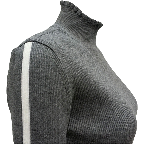 R/P/SP 소재를 사용 골조직 기본 터틀넥으로 에리에 변화를 주었으며,배색으로 디자인 포인트를준 스웨터