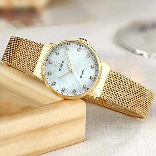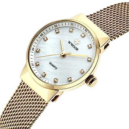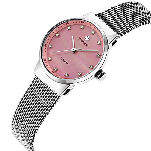 -. Title : WWOOR Women's Rhinestone Stainless Steel Mesh Band Quartz Watch Casual Business Wristwatch