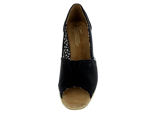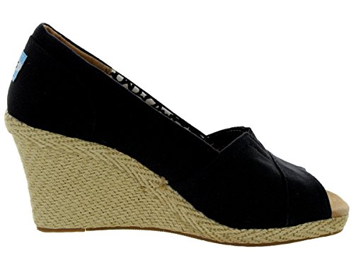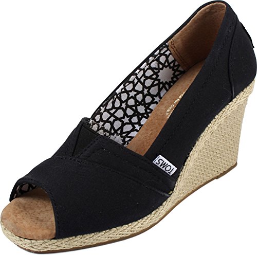 Take your look to the next level with TOMS wedges with the brand's signature logo and finished with a flirty open toe. Standing atop a lofty cork wedge, they're perfect for work, lunch with friends, or going out on the town..Feature