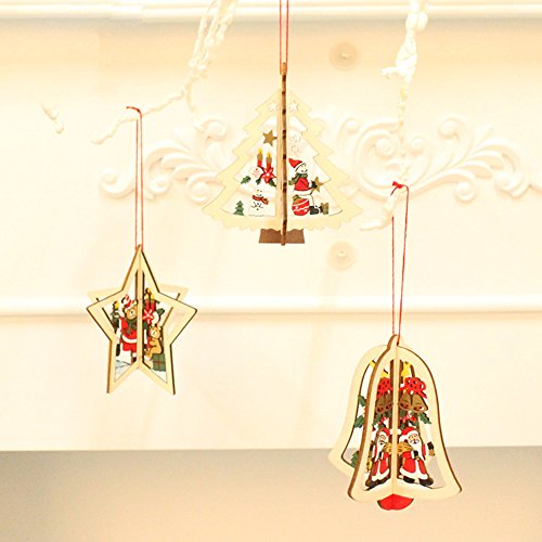 Christmas Decor, Proboths 3 Pcs Lovely Wood Carving Ornaments Wall Window Hangings for Christmas Xmas Star