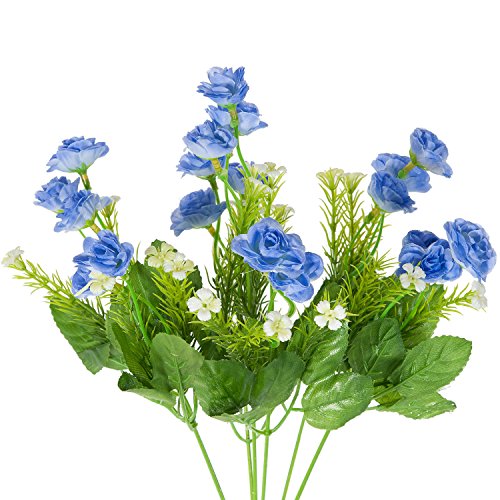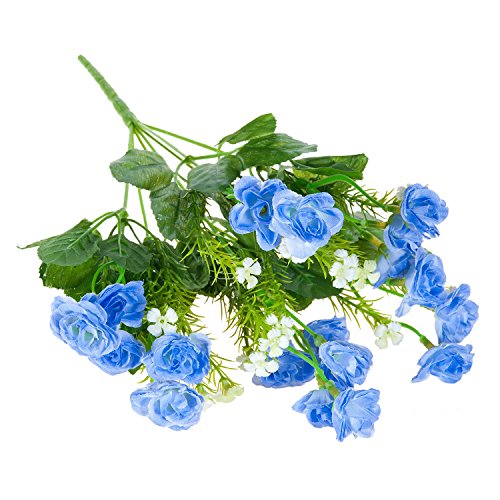 Lysport Silk Artificial Fake Flowers Rose Bouquet with 21 Heads for Home Wedding Hotel Office Bridal DIY Floral Decor, Pack of 1 (Blue)