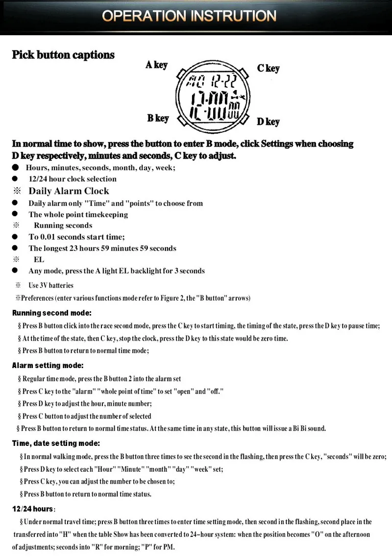 Feature:Water Resistant,Complete Calendar,Auto Date,LED display