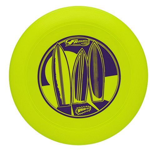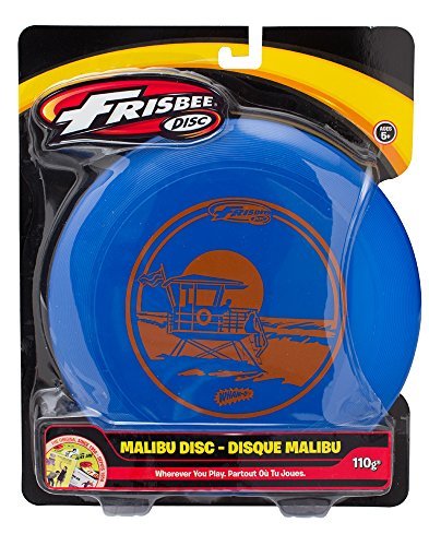 The Wham-O Malibu Frisbee is available in assorted colors and designs. It weighs 110 grams, 9.25 Dia. X 1 Height and an age grading of 5+. Perfect for the beach.