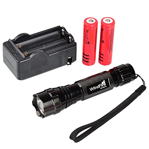 WindFire® New Super Bright Wf-501b Cree Xm-l T6 LED 1000 Lumens 1 Mode 3.7-18v Flashlight plus 2x WindFire 4000mAh 18650 Rechargeable Batteries and Smart AC Charger