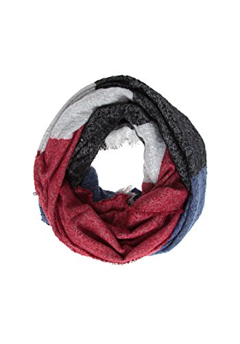 Product DescriptionRed, blue, black and gray color block scarf with soft knit and fringe ends. 100% Acrylic Imported 31' width 81' scarf lenght0