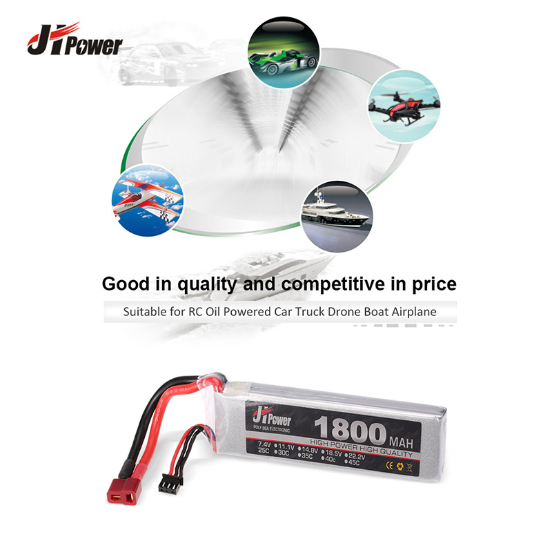This high quality 7.4V 1800mAh 25C 2S LiPo battery is just designed for RC super fans. It's suitable for RC oil powered car truck drone boat airplane, which is a very good and economical choice.