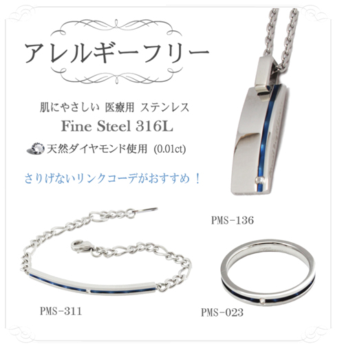 ●特徴 : アレルギーを誘発しにくく医療用にも使用される最高品位ステンレスFinesteel316Lをベース素材に使用。