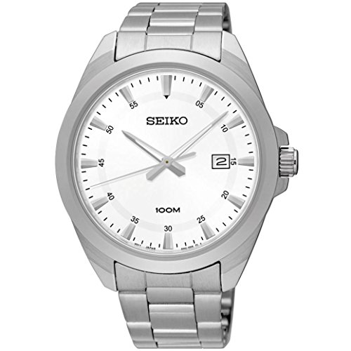-. Binding : Watch -. Brand : Seiko Watches -. Color : white -. Department : mens -. EAN : 4954628207579 -. Feature : Get the best in scratch and shatter resistance with Hardlex crystal. Now there is no need to sacrifice one for the other / Quartz movement with analog display and hardlex crystal dial window / Date calendar water-resistant / Stainless steel case with white dial / Water resistant to 10 ATM / 100 meters / 330 feet : suitable for snorkeling as well as swimming but not diving -. Label : Seiko -. Manufacturer : Seiko -. Model : SEIKO-SUR205P1 -. MPN : SUR205P1 -. PackageQuantity : 1 -. PartNumber : SUR205P1 -. ProductGroup : Watch -. ProductTypeName : WATCH -. Publisher : Seiko -. Studio : Seiko -. Title : Seiko Mens Watch Casual Analog Casual Quartz Watch SUR205P1
