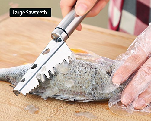 Makidar Fish Scaler Fish Scales Scraper Scales Peeler 2 Sawtooth Design for Fast and Easy Fish Scale Removing, 18/10 Stainless Steel