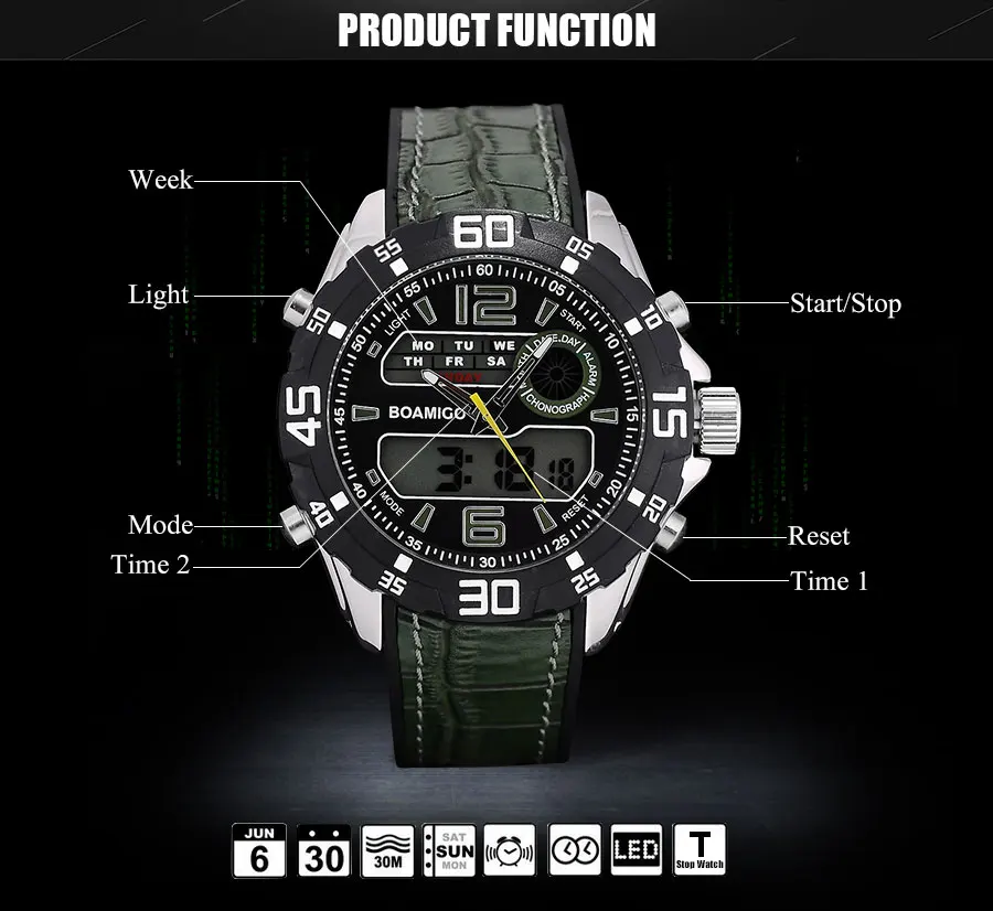 Feature:Stop Watch,Shock Resistant,LED display,Auto Date,Chronograph,Complete Calendar,Multiple Time Zone,Perpetual Calendar,Water Resistant,Alarm