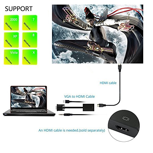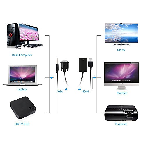 Studio : Alitutumao Publisher : Alitutumao Binding : Electronics Product Description Alitutumao VGA to HDMI Converter This product is the New VGA to HDMI with Audio USB conversion cable in compact portable design. It converts VGA analog signal output from most PC and laptops to HDMI digital signal input from your HDTV, operated easily and conveniently.An HDMI cable is needed (Not included)