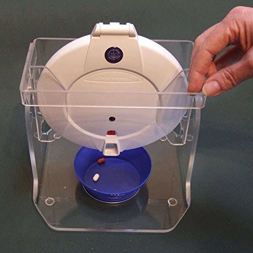 Studio : NRS Publisher : NRS Product Description This Pill Dispenser will prompt people and dispense medication up to 28 times per day. For people who have difficulty remembering to take their medication on time or who have difficulty identifying the correct medication to take. It can be easily filled and programmed by a user, relative, carer or pharmacist. At the pre-programmed time the internal cassette rotates, the alarm signal is heard (continuous for up to one hour or until the pills are dispensed), a light flashes (for the hearing impaired) and the appropriate pills come into view. For those who have a larger amount of pills to take at the same time, two compartments can be programmed to alarm at the same time. To stop the alarm and dispense the pills simply tilt the dispenser allowing the pills to fall into the hand or a suitable container. For people with limited dexterity or weakness of the hand / wrist a Tipper is available. The dispenser is lockable, allowing access only to the medication due to be dispensed and preventing extra medication being taken. Spare trays are available enabling medication to be filled remotely by a carer or pharmacist. It has a one year battery life and a low level indicator when batteries are low. Requires 4 x AA batteries (included). 0