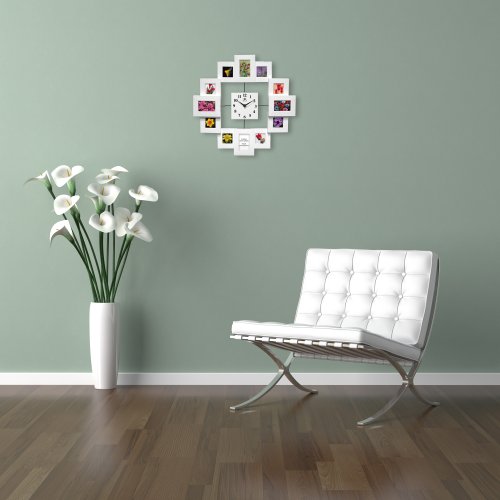 - Feature : White Finished Case / 12 small picture frames / Quartz movement / Arabic numerals