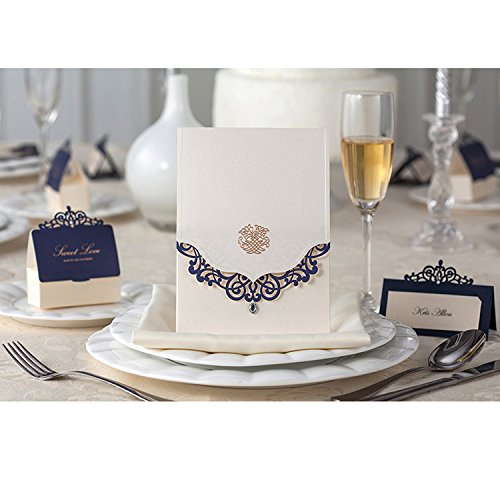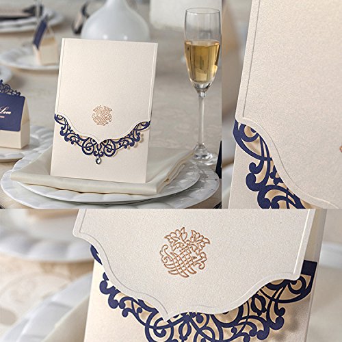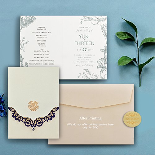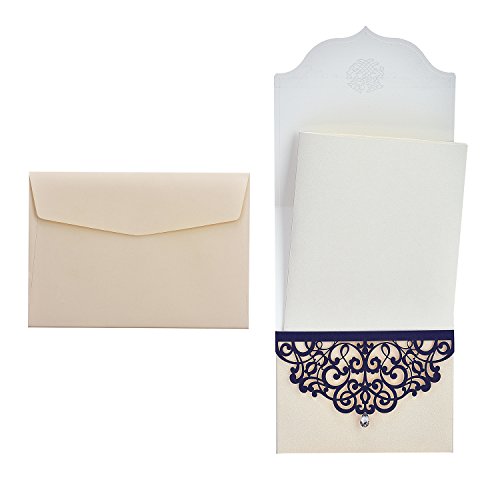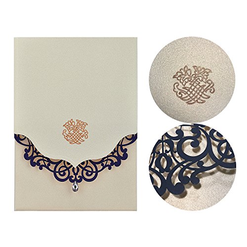 Weddingbob 5Pcs Laser Cut Wedding Invitations Cards Kit for Bridal Shower Dinner with Envelopes and Printable Paper Hollow-carved Lace with One Waterdrop Rhinestone