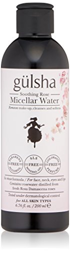 Based on an exclusive formula with gentle micellar technology and ultimate rosewater, gülsha Soothing Rose Micellar Water removes make-up, cleanses and softens the skin in a single step. Enriched with rose water for pleasant soothing effect, it instantly traps all impurities and traces of make-up without disturbing the natural skin moisture. Clearing face, neck, eyes and lips with no need to rinse, your skin is left feeling fresh and soft with a smooth glow. Contains rosewater distilled from fresh Rosa Damascena roses, which are hand-picked before sunrise using traditional techniques handed down through generations. A limited number of bottles is produces each year. Free of parabens, alcohol, SLS, mineral oil, colorants, phthalates and perfume. Dermatologically tested and suitable for all skin types.Feature