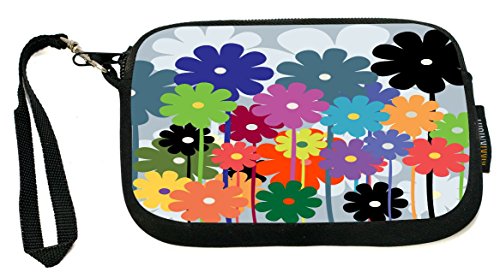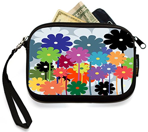 -. Title : UKBK Multicolor Floral Daisies Retro Neoprene Clutch Wristlet