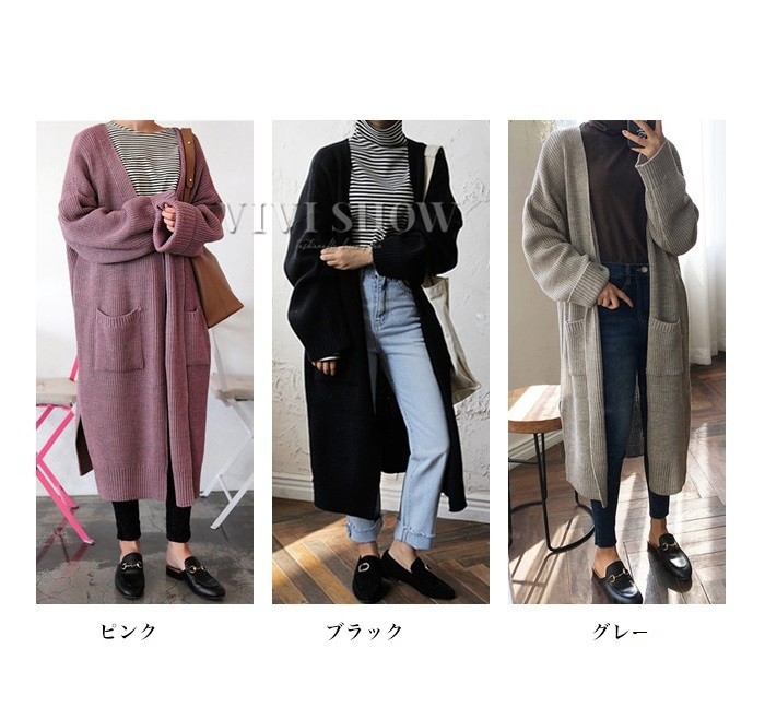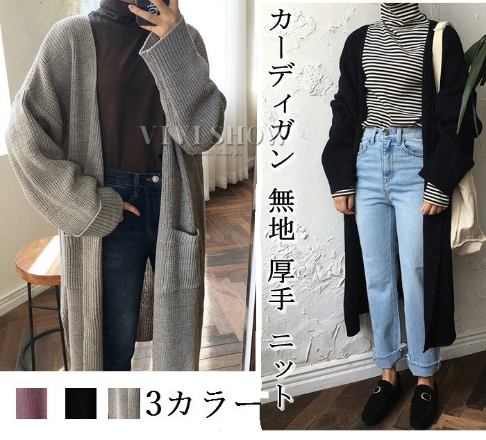 韓国ファッション 秋冬新作 3カラーカーディガン 無地 厚手 ニットカーディガンセーター 膝下丈 ロングカーディガンサイズ:FREE 総丈:105cm バスト100-105cm 桁丈:68cm素材:ポリエステル裏地:なし透け感:なし伸縮性:あり