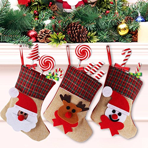 - Christmas stockings set includes 3 cute styles which are decorate, santa, snowman and reindeer