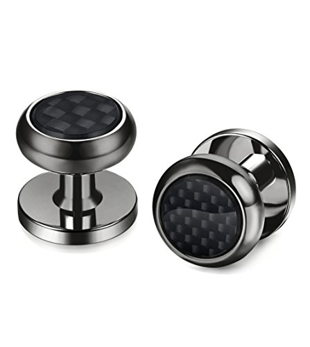 (LOYALLOOK)/Accessories/Ties/DIRECT FROM USA/LOYALLOOK 8pcs Mens Carbon Fiber Cufflinks and Shirt Studs Set Tuxedo Shirts Business Wedding Black