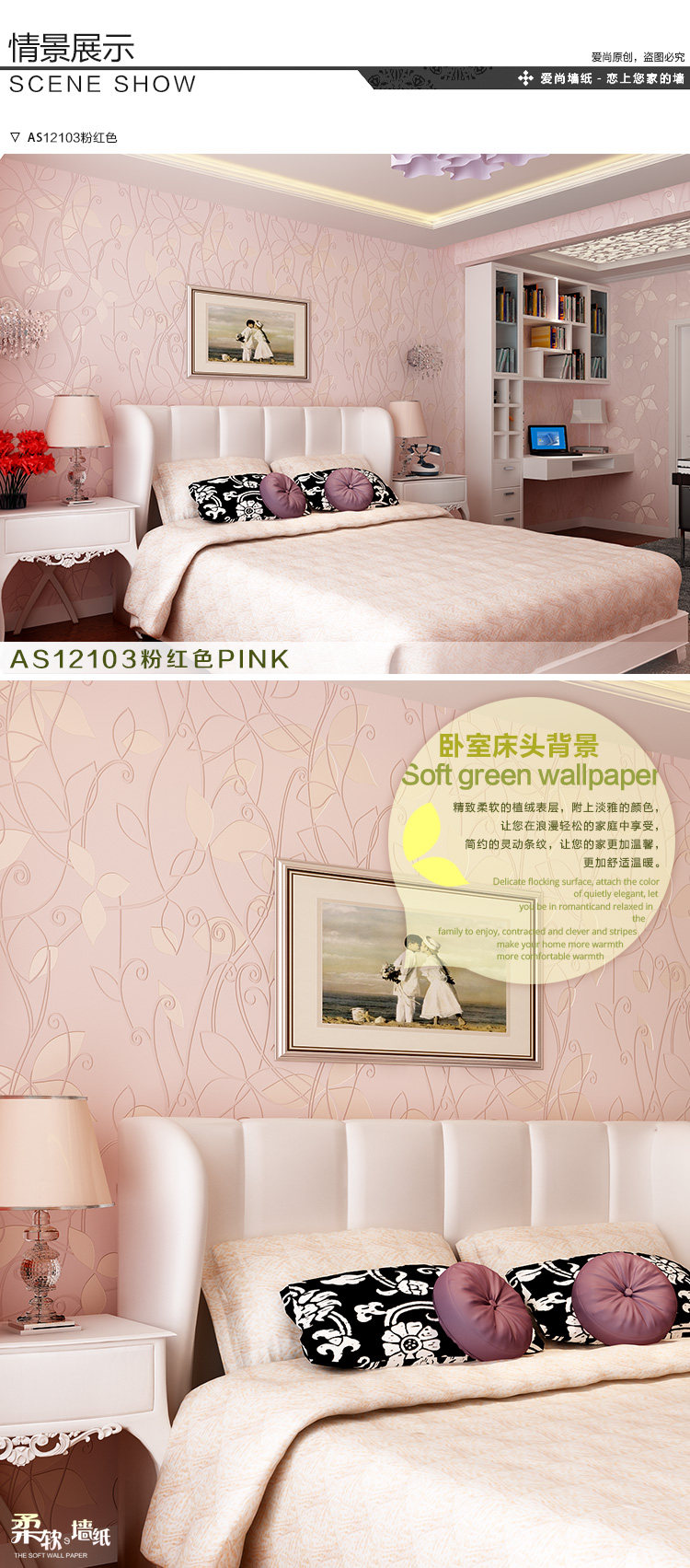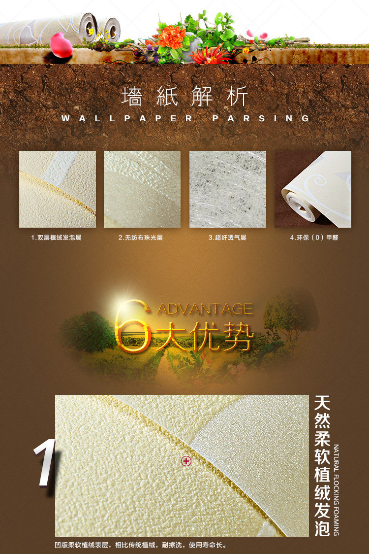 Material :Non-won Fabric wallpaper