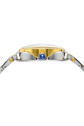 40 mm case diameter, 11 mm case thickness; Two tone stainless steel case and bracelet; silver tone & gold tone; dazzling crystals inlaid bezel; Carved mother of pearl dial with Roman numerals