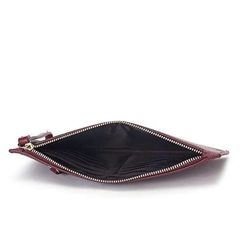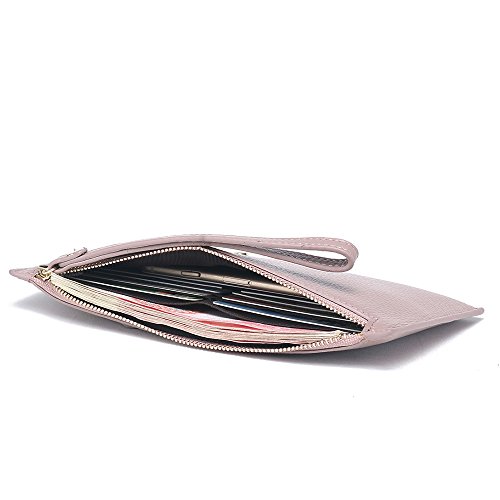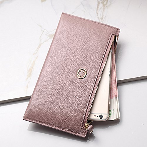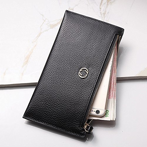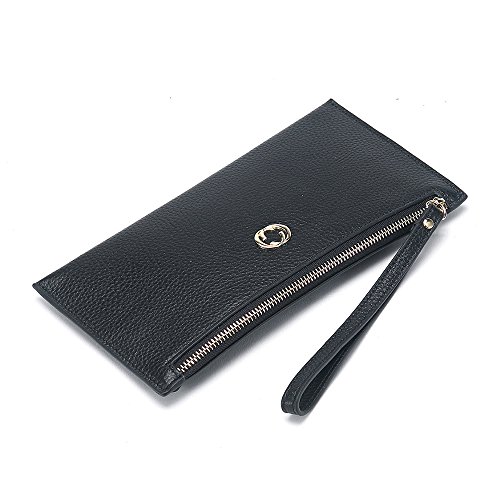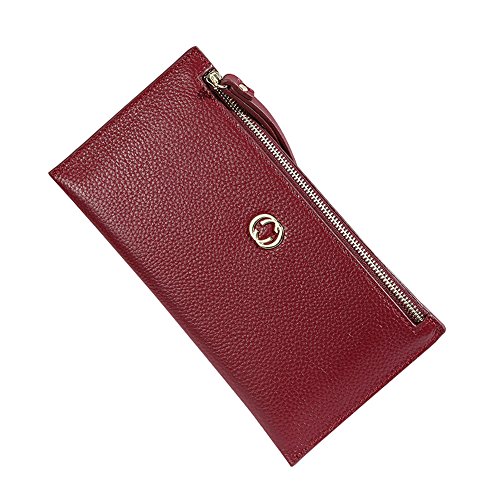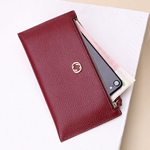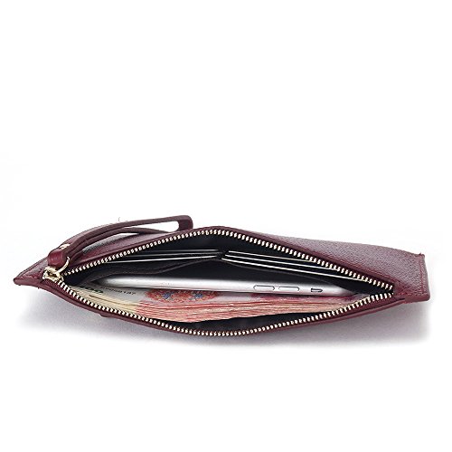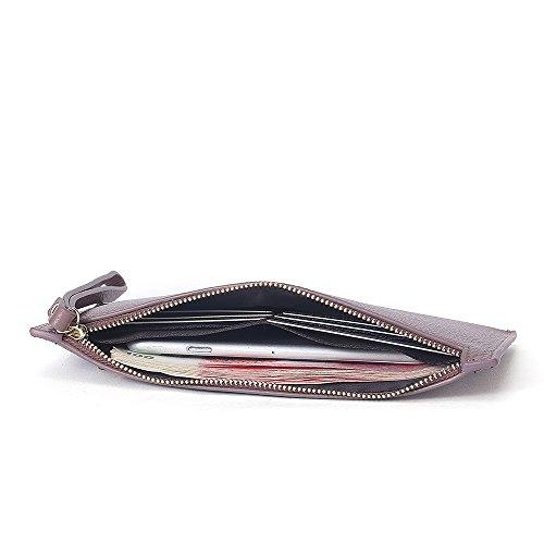 Product Description Basic information: Dimensions:Length:21.5cm Width:11.5cm Height:1cm; (8.46*4.53*0.39inches); Material: Genuine Leather and quality hardwares.Stylish and elegant design,suitable for the ladies temperament; Opening mode:zippering.Alloy zipper durable; Designed with simple and fashion appearance,it is an ideal for ladies to be used as wallet or clutch in office,which can simultaneously satify your fashion or practicability requirements. Structure: 1*Zipper pocket can hold coins or other little stuff; 2*Bill Compartments pockets may store lots of cash and 4.7 inch mobile phones even more mainstream mobile phones,also be used to deposit passbook, passport etc; 8*Card slot pockets Can store credit cards, shopping cards,ID cards,etc. Remarks: This product is made from genuine leather and has that wonderful new leather aroma. There may be a bit smell when you get this bag, since it's new and unused. You could open the package and put it in a ventilate place for a few hours, then the smell will fade away. To maintain the genuine leather,we should keep it away from sharp items,oil,chemicals,humidity and heat source.Clean it with dry soft cloth when got stains. 0