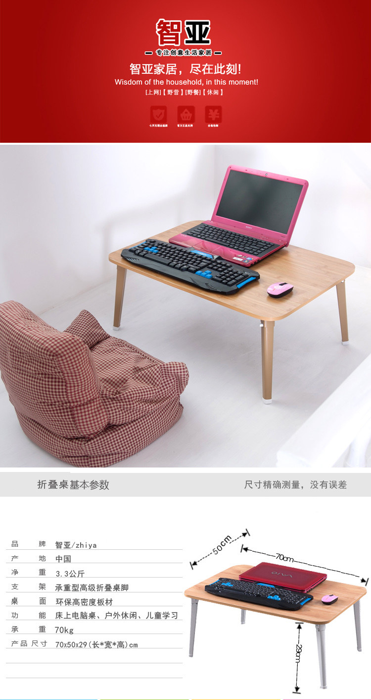 智亚长70-50床上电脑桌 笔记本电脑桌  懒人桌折叠小桌子床上书桌