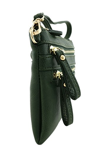Multi Zipper Pocket Crossbody Bag, Total 3 zipper pockets at outside and 1 zipper pocket inside. It can be used as a wristlet purse or as a crossbody bag.