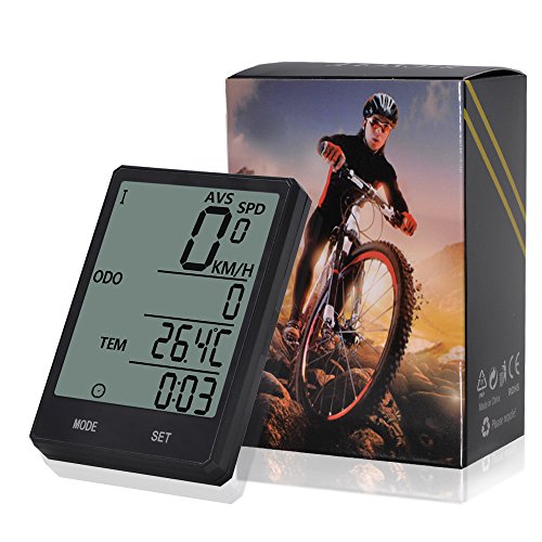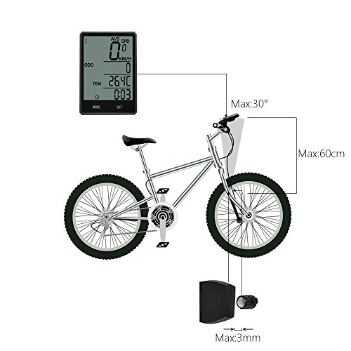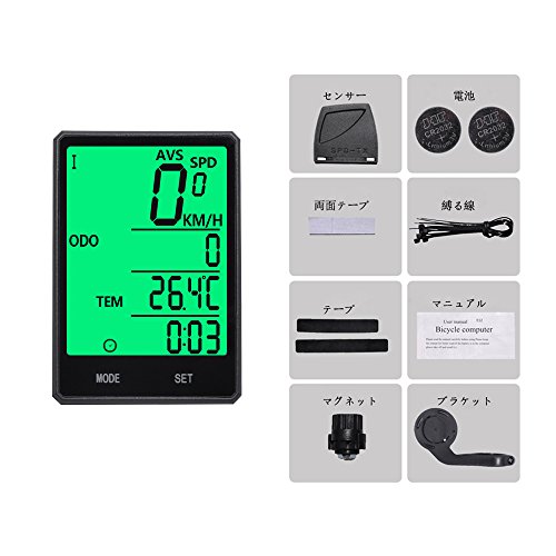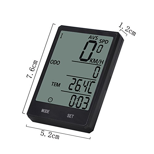 19 Functions ---Auto off / Auto Wake up ---Memory functions ---SPD Current speed(0-99.9) ---AVS Average speed ---CLOCK 12H/24H ---TEM Temperature ---Setting tyre circumference and ODO ---Green Backlight ---Low power indicator(2.5v) ---Speed tendency(3 km per grip) ---ODO odometer ---TM rip riding time ---SW Stop watch ---Maintenance alert ---DST Trip distance ---MXS Max speed ---FAT Fat burn measurement ---KM,M selectable ---Two bicycle using Specifications: Material: ABS Color: Black Power Source: CR2032 Battery Item Size: 3 * 2.05 * 0.73in Item Weight: 138g / 4.86oz Package List: 1 * Bicycle Computer 1 * Sensor 1 * Bracket 1 * Magnet 2* Stickers 2*Battery 7 * Binding 1 * User English Manual Note: 1.Please read the manual carefully before using. 2.We will send every customer a manual as a PDF format. 0 |