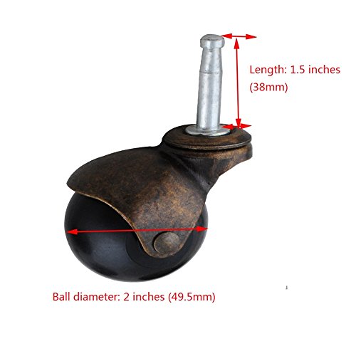 Ball diameter is about 2 inches (49.5mm) antique gold balls casters, stem length is about 1.5 inches (38mm) with stems and sockets