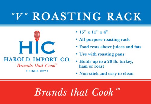 HIC's Nonstick Pro V Turkey Roasting Rack for cooking, baking, roasting, and broiling various-size cuts of beef, poultry, pork, game, and more