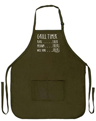 Funny Aprons for Men Grill Timer Beer Count Funny Grilling Apron Two Pocket Man Apron Military Olive Green
