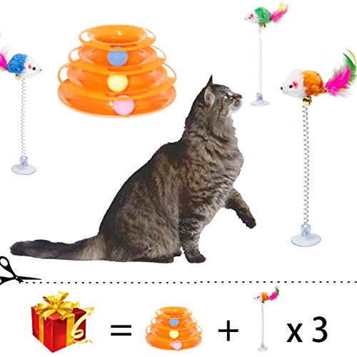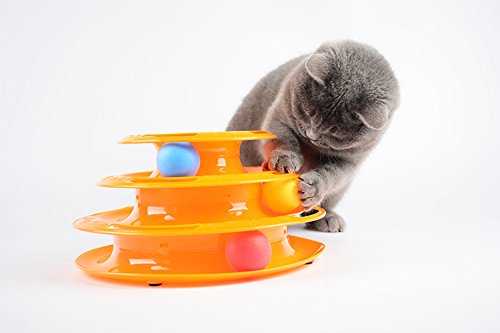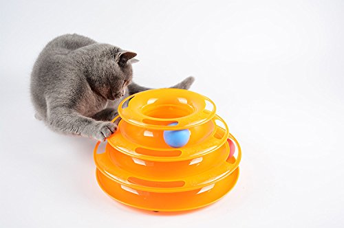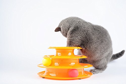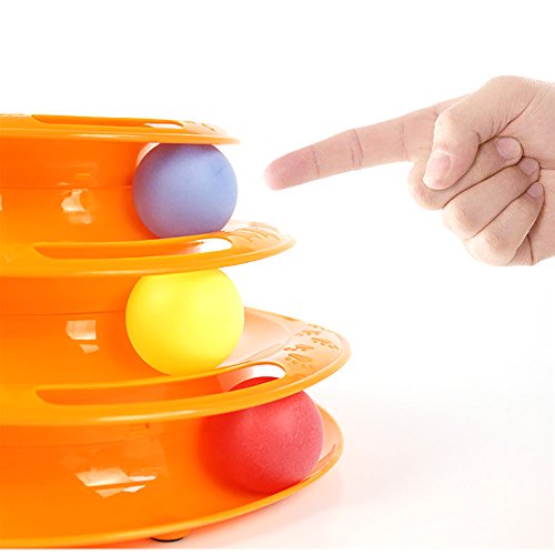 고양이 장난감 【DIKASI】회전 볼 고양이는등하며 놀이 애완동물 용품묘 용품 노는 판 3 층타워 원반 볼 운동 부족이나 스트레스 해소묘 놀이용 (오렌지)