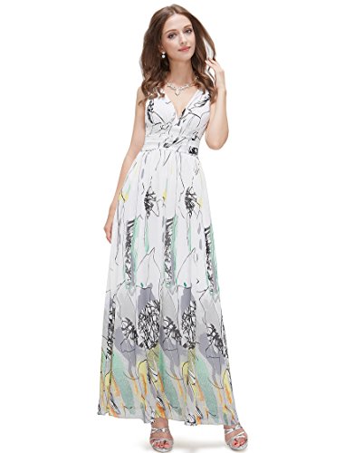 This stunning floral printed maxi dress is perfect addition to every women's closet. Elegant enough to wear to an evening wedding but fun enough to be worn around town during the day, you really cannot find a more versatile dress. The dress is made of lightweight chiffon which flows effortlessly as you move.Feature