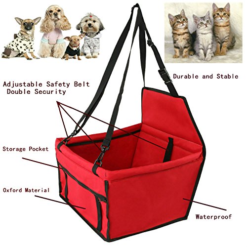 -. Feature : Made of high quality oxford material, quite durable and sturdy. / Designed for secure driving, with adjustable safety leash keep the seat stable. Compatible with all cars. / Easy to install and remove, with simple folding style. It's convenient to storage when not in use. / Improve the comfort and safety of dogs and cats in the car, suitable for traveling with your pets, enjoy the fantastic journey together! / Perfect choice for your beloved pets, give it extra safe protection and love. Keep your car clean meanwhile make your pets happy!