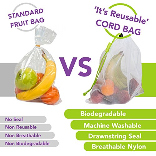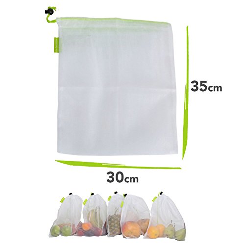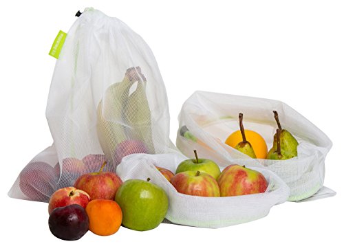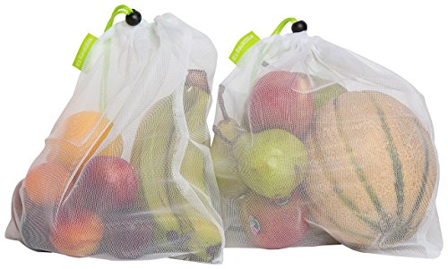 Reusable Produce Bags – Set Of 5 Durable Mesh Produce Bags – Eco Friendly Bags For Fruit Storage PLUS Vegetables, Bulk Bin Nuts & Grains Or Use As Nylon Straining Bag!