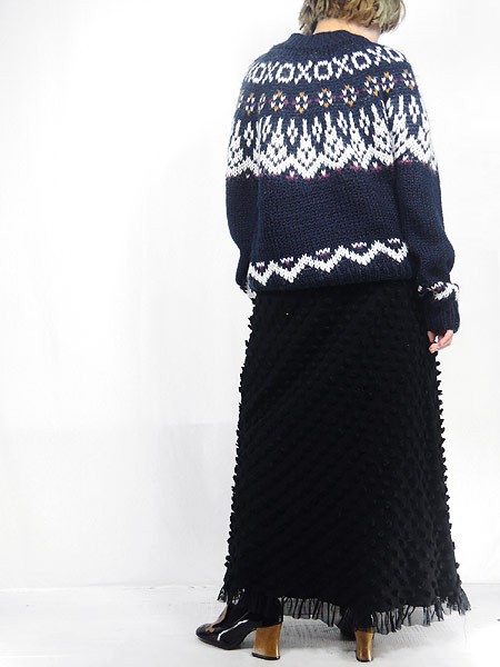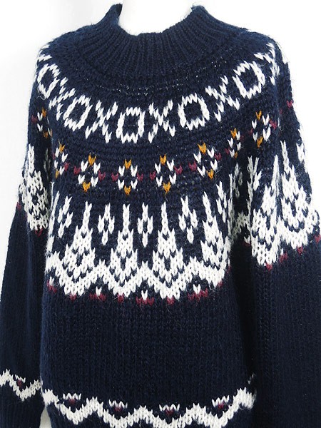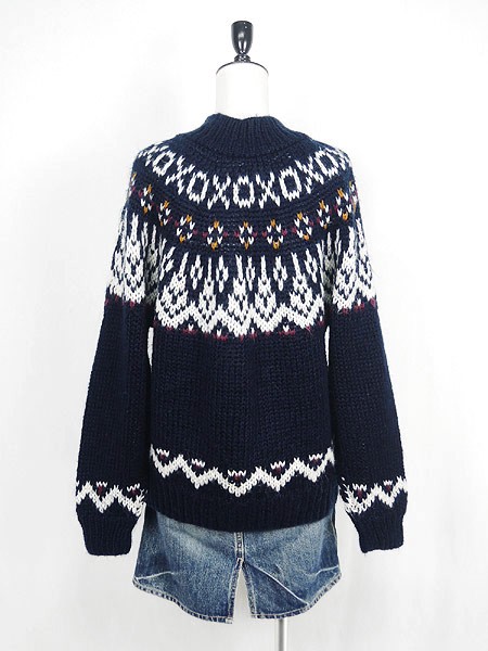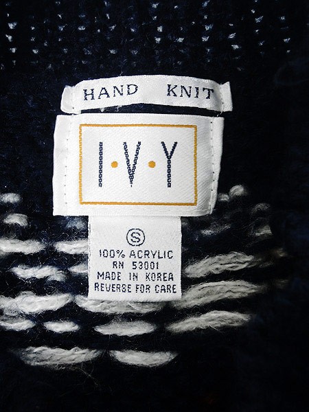 Ladies ブランド- カラー紺ベース メール便不可 コンディション★★★ モデル身長158cm 素材アクリル 表記サイズS 実寸サイズ 着丈 64.5 cm 身幅 55.5 cm 袖丈 74 cm ラグラン袖の為、襟元から袖先までの計測 ※ウエスト・ヒップ以外は平置き採寸