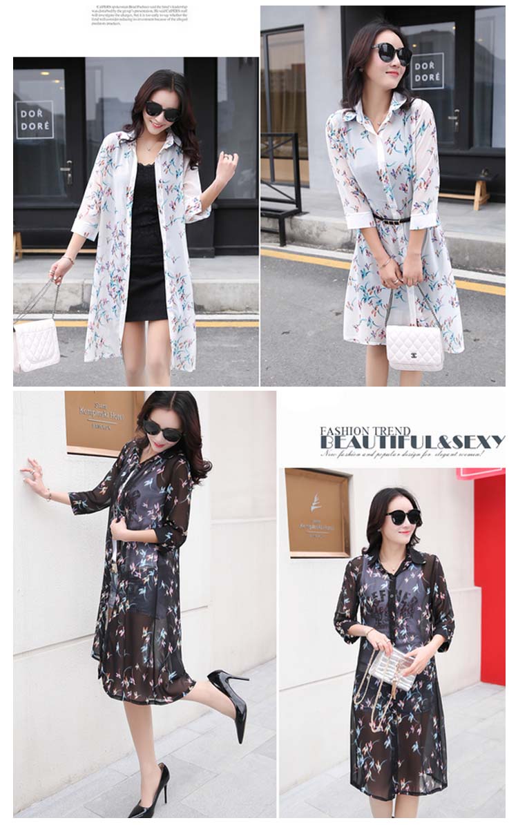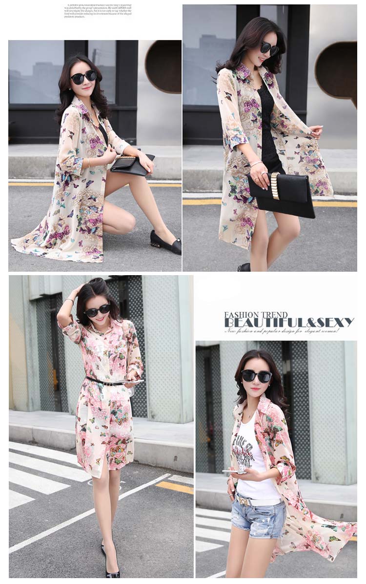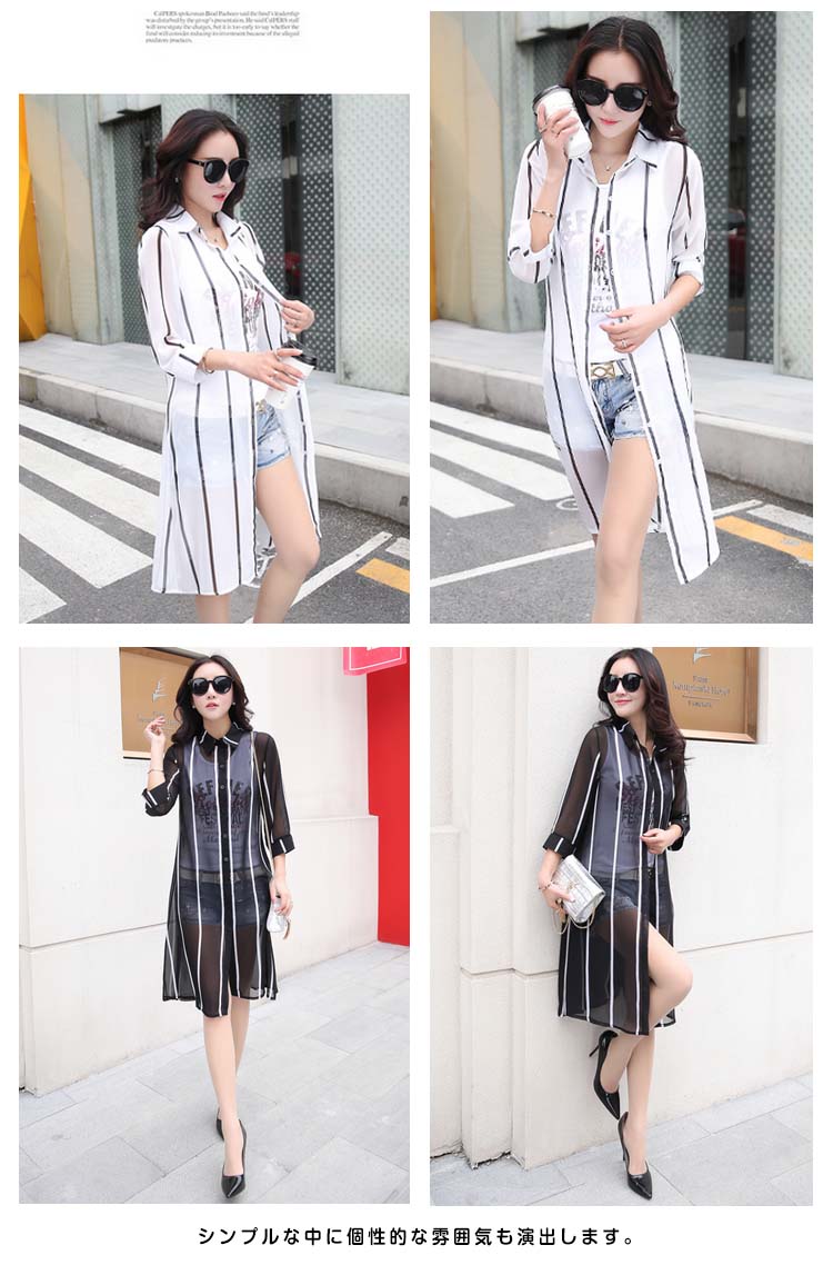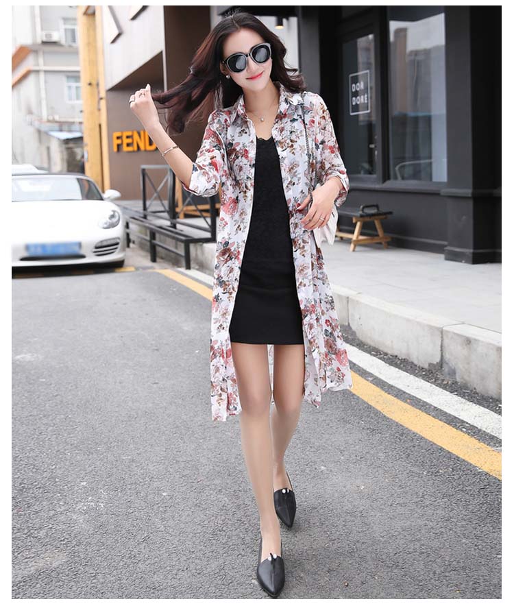 | 透け感のあるシフォン生地の季節感溢れる花柄シースルーロングシャツお目見えッ★春夏の定番トップス…暑い夏でもサラサラな着心地♪★ 透け感のあるシフォンだからインナー選びも楽しい♪程よい透け感が可愛さUP ! シンプルな中に個性的な雰囲気も演出します。 | |