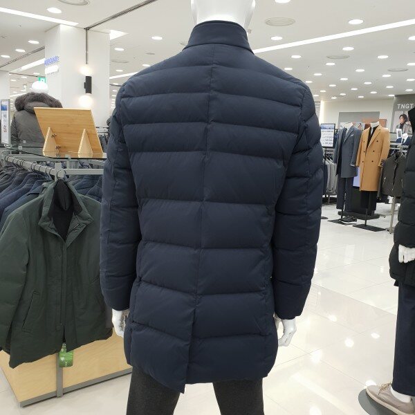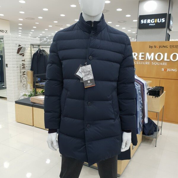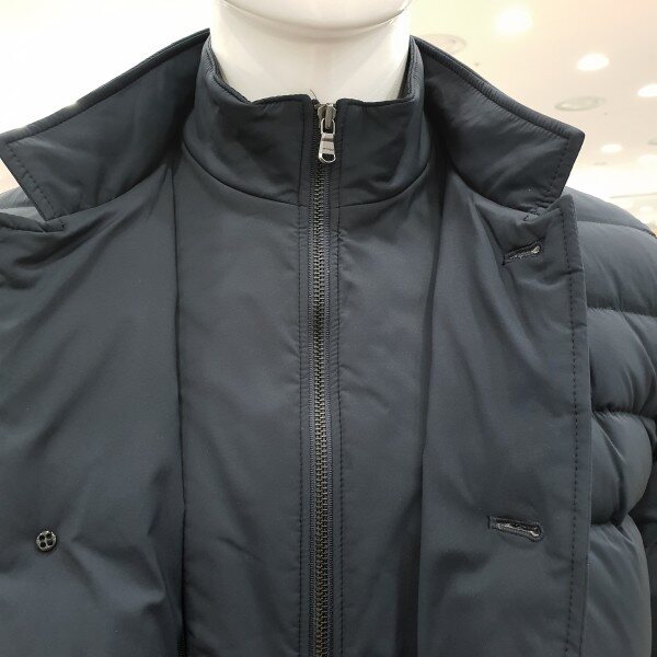 . 베이직한 기본 스타일의 구스다운 코트입니다. 탈착 가능한 패널이 부착되어 차가운 바람을 막기 유용합니다