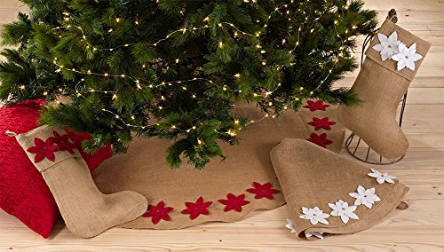 - beautiful felicia poinsettia burlap design tree skirts and stockings in red or white