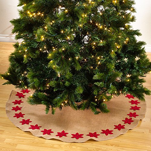 Fennco Styles Felicia Poinsettia Burlap Holiday Christmas Tree Skirt(53" Tree Skirt, Red)