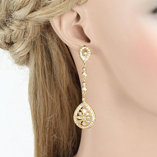 -. Binding : Jewelry -. Brand : EVER FAITH -. Department : womens -. Feature : [!]EVER FAITH is a US registered trademark and Ever Faith Jewelry(former name: Kiss Bling) is its only owner. We will pursue legal action against trademark infringement in case of UNAUTHORIZED sale or resale. The copyright of the model picture belongs to EVER FAITH. Reproduced without authorization prohibited. / Cubic zirconias are paved to the jewelry item to secure from loosing. Pave settings are made up of lots of small stones set closely together. The stones are separated and held in place by little beads of the setting metal. The result is what looks like a continuous surface of the stones. / Width: 1.7cm(0.66"), Length: 6cm(2.36"). One Pce Weight: 4g. / Brass Metal is much smoother and will protect your skin from rubbing. You will feel comfortable when wearing it. Also, jewelry made by brass metal has light weight. / Wrapping: Come with a gift box or favor bag (depend on product size). If you need assistance please contact us. -. Label : EVER FAITH -. Manufacturer : EVER FAITH -. Model : N03817-2 -. MPN : N03817-2 -. PartNumber : N03817-2 -. ProductGroup : Jewelry -. ProductTypeName : FASHIONEARRING -. Publisher : EVER FAITH -. Studio : EVER FAITH -. Title : EVER FAITH® Art Deco Classical Gatsby Inspired Pave Cubic Zirconia Chandelier Earrings Gold-Tone