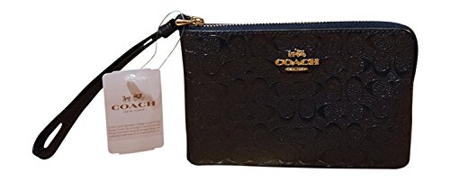 Coach Signature Debossed Patent Leather Corner Zip Wristlet