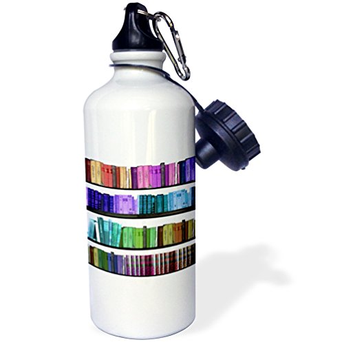 Colorful bookshelf books - Rainbow bookshelves - reading book geek library nerd - librarian author Water Bottle is an eco-friendly way to carry your favorite drink to school, work or anywhere you go. This 20 oz aluminum sports bottle features 2 caps, 1 easy-flow twist on drinking spout and 1 standard twist on cap. Another great feature is the included carabiner clip that allows you to attach your bottle securely. Custom printed high gloss image sublimated directly to white glossy exterior surface. Image on both sides. Color will not run or fade with use. Hand washing recommended.Feature