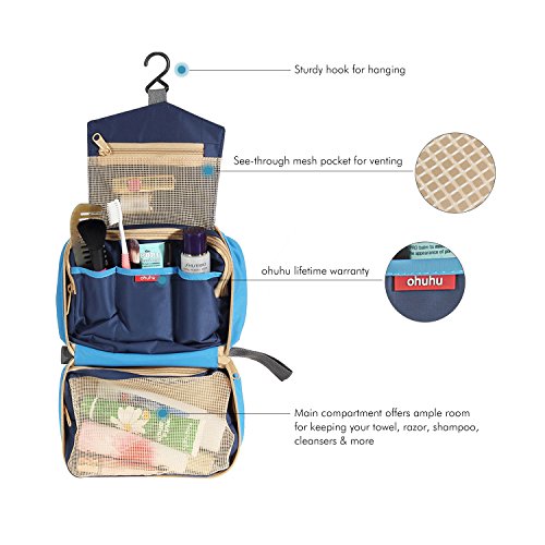 -. Binding : Misc. -. Brand : Ohuhu -. Color : Travel Toiletry Bag -. EAN : 6958446322481 -. Feature : Crafted with 60% Nylon, 20% Dacron 10% spandex & 10% PVC, waterproof material. / Compact and Light Weight - Bag Size: 9.2 x 5.6 x 2.7 inch. / Hanging toiletry bag - built-in hook allows you to hang it anywhere, from shower rods to tree branches. / Multifunctional - can also be used as cosmetic organizer or makeup bag. / Pack your toiletries and grooming essentials for traveling, camping, hiking, or picnic inside this travel bag. -. IsAdultProduct : 0 -. IsAutographed : 0 -. Label : Ohuhu -. Manufacturer : Ohuhu -. Model : NA -. MPN : B00Z93EFGS -. PackageQuantity : 1 -. PartNumber : B00Z93EFGS -. ProductGroup : Health and Beauty -. ProductTypeName : HOME -. Publisher : Ohuhu -. Studio : Ohuhu -. Title : Ohuhu Waterproof Travel Toiletry Bag, 9.2" X 5.6" X 2.7", Blue