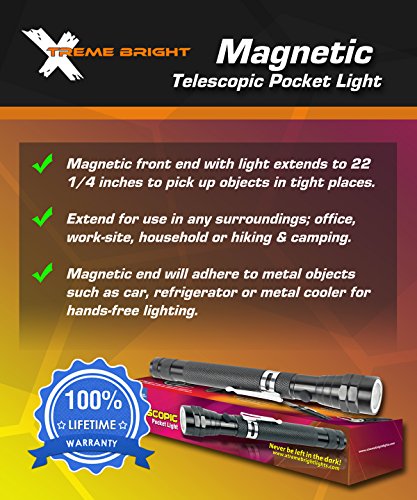 -. Title : Xtreme Bright® Magnetic Telescopic Pocket Light, LED Mini Flashlight with 22-inch Flexible Telescoping Head - Very Bright, Portable Work Light with Magnetic Ends, Attaches to Any Metal Surface - 100% Lifetime Warranty Through Triumph Innovations Only